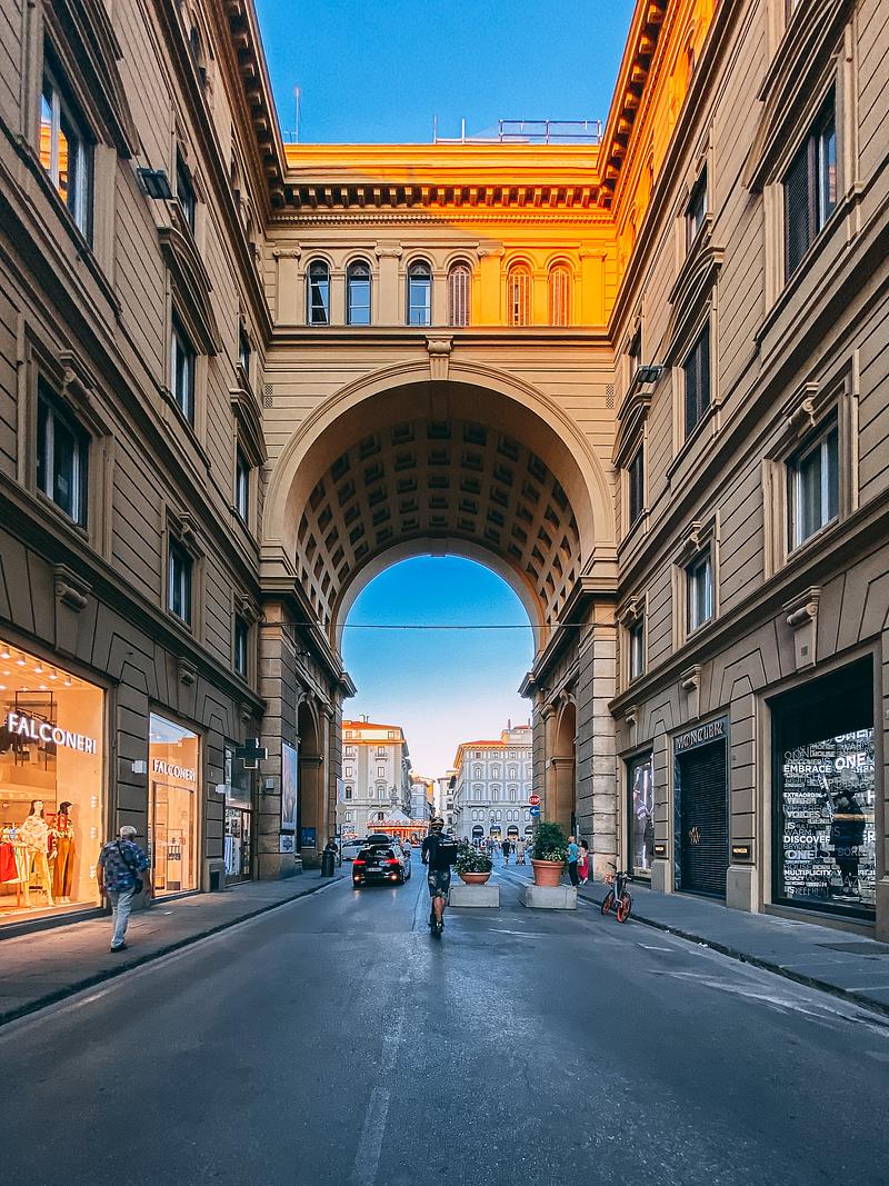 This is the arch entrance to Piazza della Repubblica in Florence, Italy.
