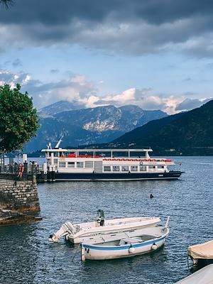 A ferry docking at Lenno in Lake Como, Italy.