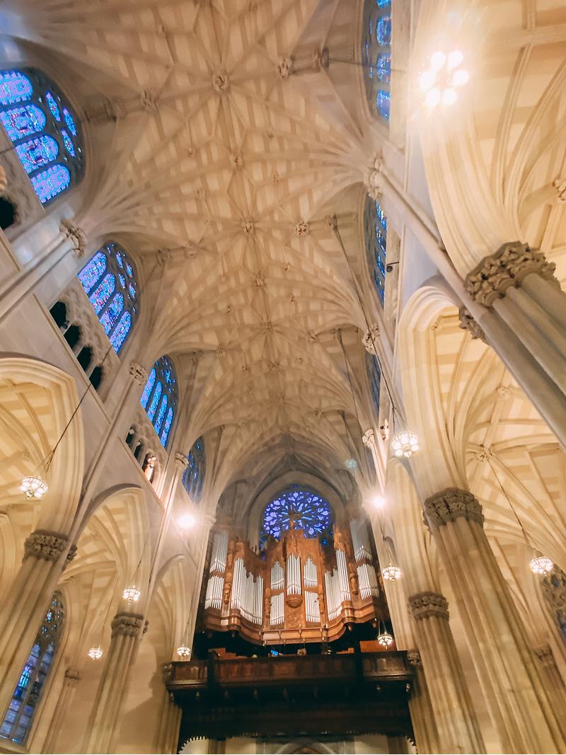 The vaulted ceiling and organ of NYC's St. Patrick's Cathedral.