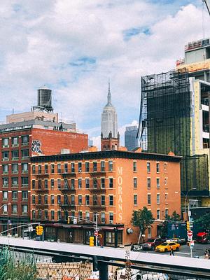 The Empire State Building neatly aligning with the steeples of a Chelsea convent. As seen from The High Line park.