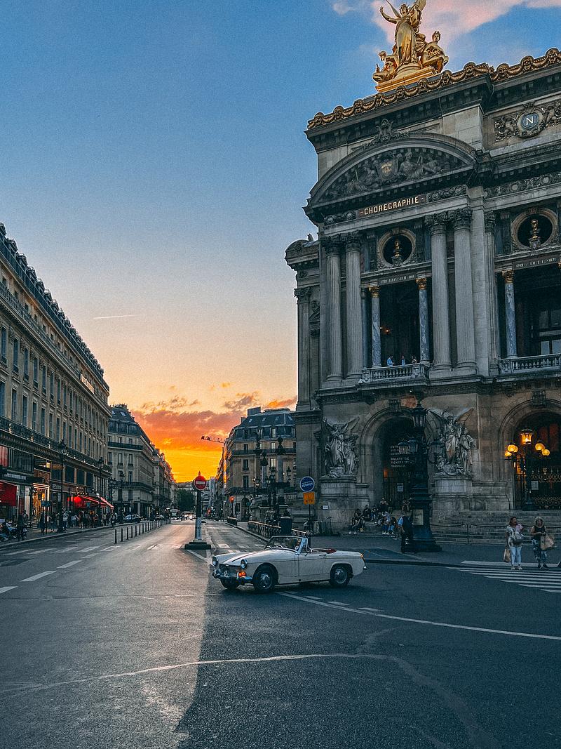 What a beautiful view looking down the grand boulevards of Paris during sunset.